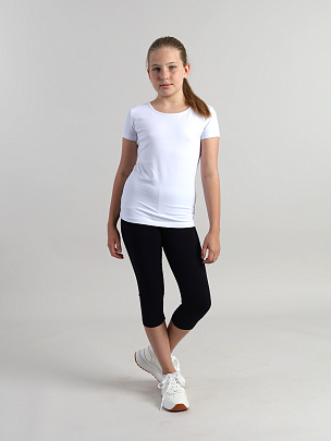 Бриджи длиной ниже колена, без боковых швов. Верхний срез обработан швом вподгибку, с предварительно притачанной резинкой.