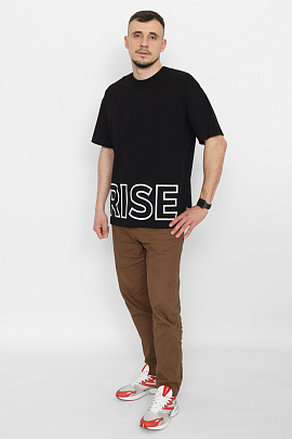 Футболка мужская из кулирной глади. С коротким рукавом. Воротник из эластичной рибаны. На полочке принт (будущее).